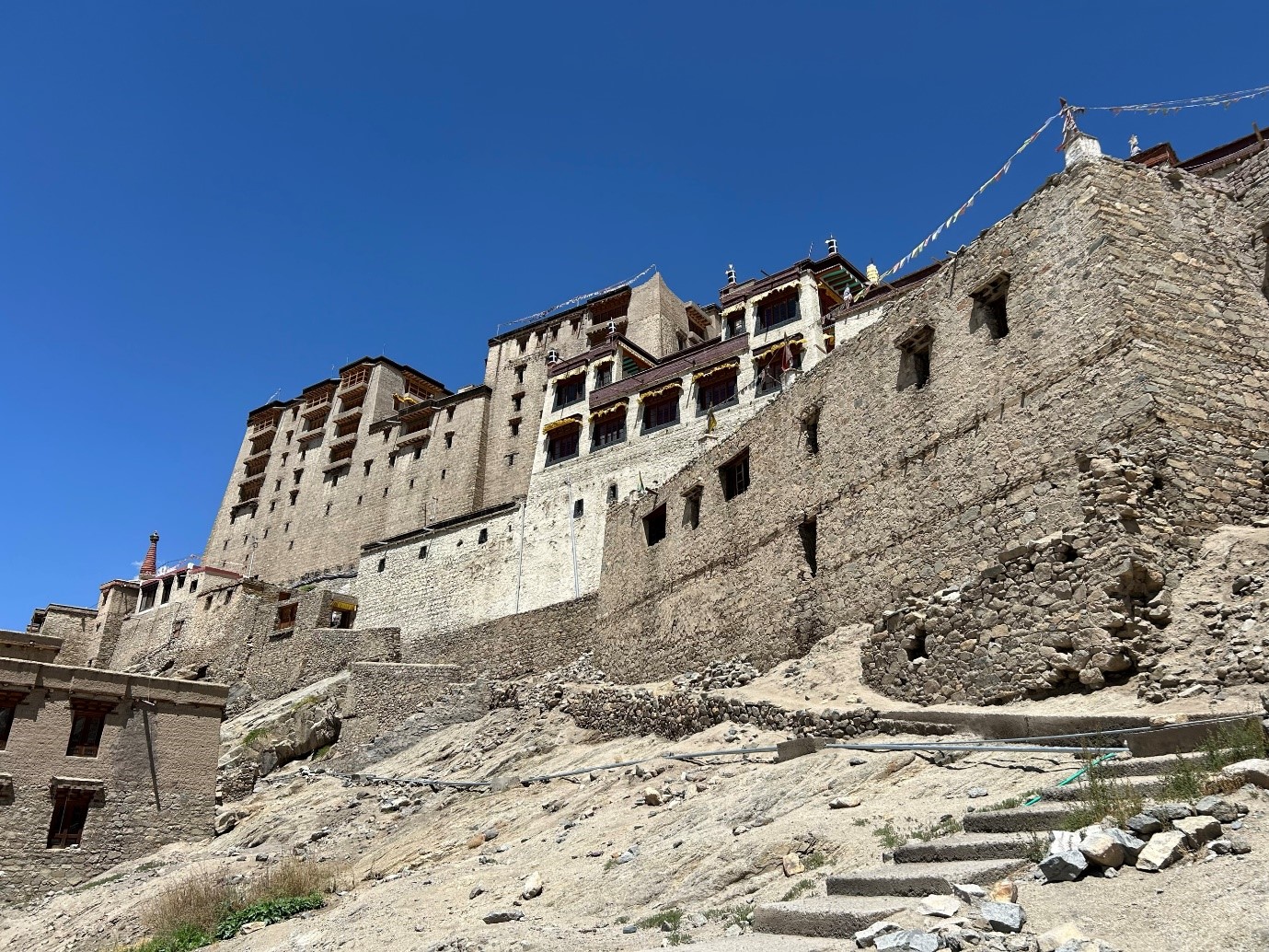メインバザールからTsemo Gonpaが見えるので、そこに向かってひたすら街中や砂利道の山を登っていくコースになります。