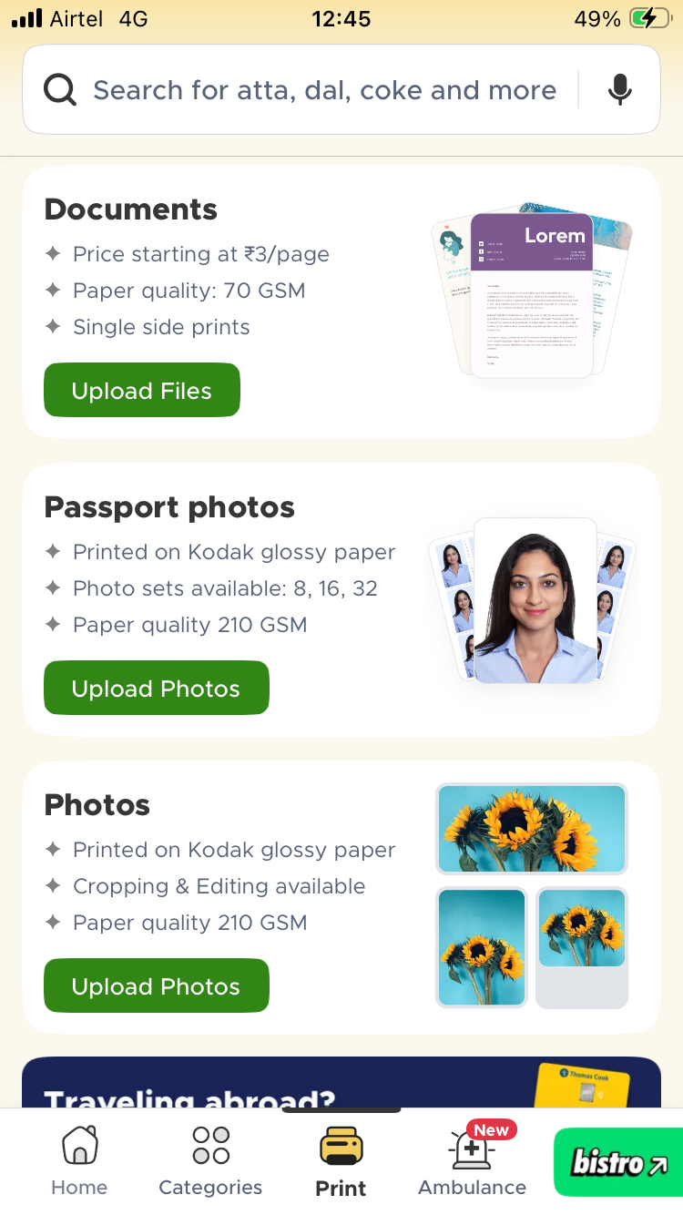 【Blinkit プリントサービス画面】
