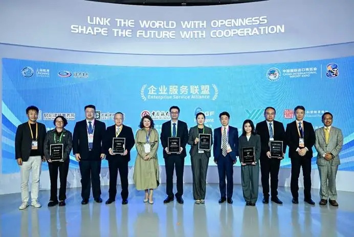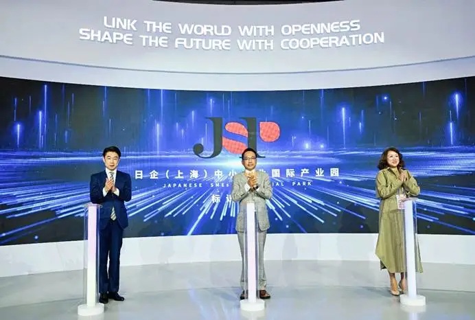 11月5日、上海で第8回中国国際輸入博覧会(進博会)が華やかに開幕しました。 国家会展センター3号館東エリアに設けられた「臨港展示区」では、 日系企業(上海)中小企業産業パーク(通称:日企産業園)のロゴ発表式典及び進博会テーマ展示区開会式が開催され、 50社以上の関係各社の代表が集まり、産業パークの新たな一歩を祝福しました。