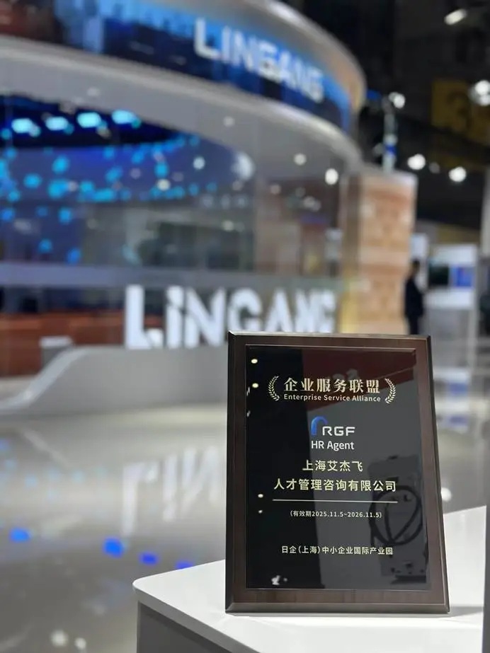 ■ RGFが正式なサービスプロバイダーとして認定 この度、上海艾杰飞人才管理咨询有限公司(RGF)は、日企産業園の正式なサービスプロバイダーとして認証されました。 RGF企画推進部 陳惠芬が登壇し、認証牌を授与されました。 これにより、RGFは日企産業園を通じて、より多くの日系企業に高度な人材サービスを提供する立場として正式に認められたことになります。